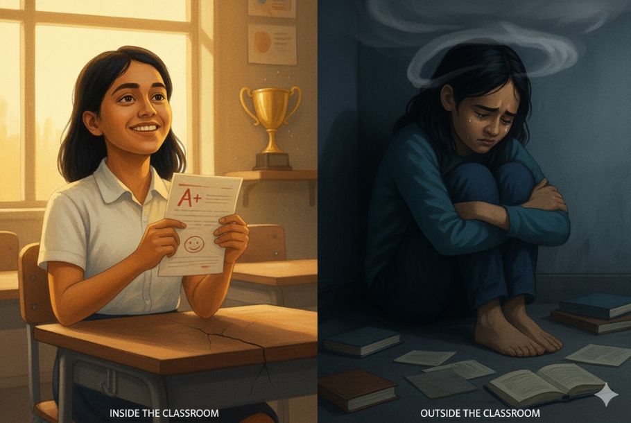 A few months ago, a bright management student I met broke down quietly after class. On the surface, she had everything—good grades, active participation, and supportive peers. But behind her smile lay sleepless nights, the relentless fear of losing marks, and the sting of constant comparison. Her story is not unique; it echoes across schools and colleges in India.