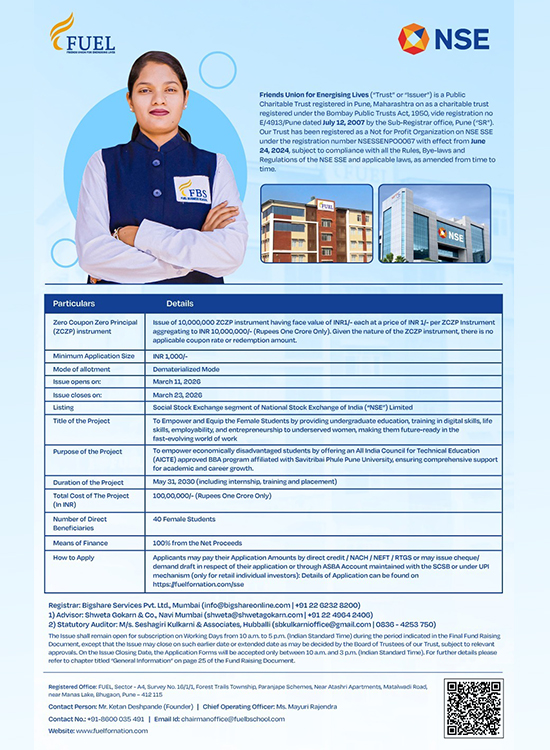 FUEL’s entry into the Social Stock Exchange marks a significant achievement in its mission to bridge the gap between education and employability, particularly for first-generation learners and students from economically disadvantaged backgrounds.