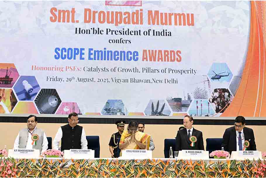 Speaking on the occasion, the President said that the SCOPE Eminence Awards are a celebration of the significant contribution of public sector enterprises to the development of India. Performing well on all parameters, social, economic, environmental, technological and ethical, is the hallmark of a good enterprise. She appreciated SCOPE for honouring good performance across multiple dimensions such as sustainable development, corporate governance, corporate social responsibility and innovation. She said that it represents a holistic approach towards progress and development.
